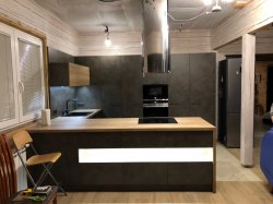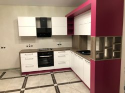 Угловая кухня из белого крашеного дсп. Фурнитура Blum
