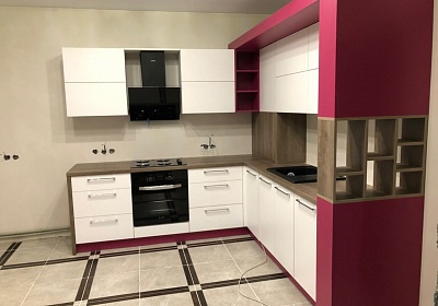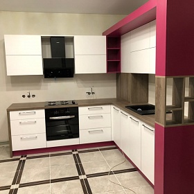 Угловая кухня из белого крашеного дсп. Фурнитура Blum