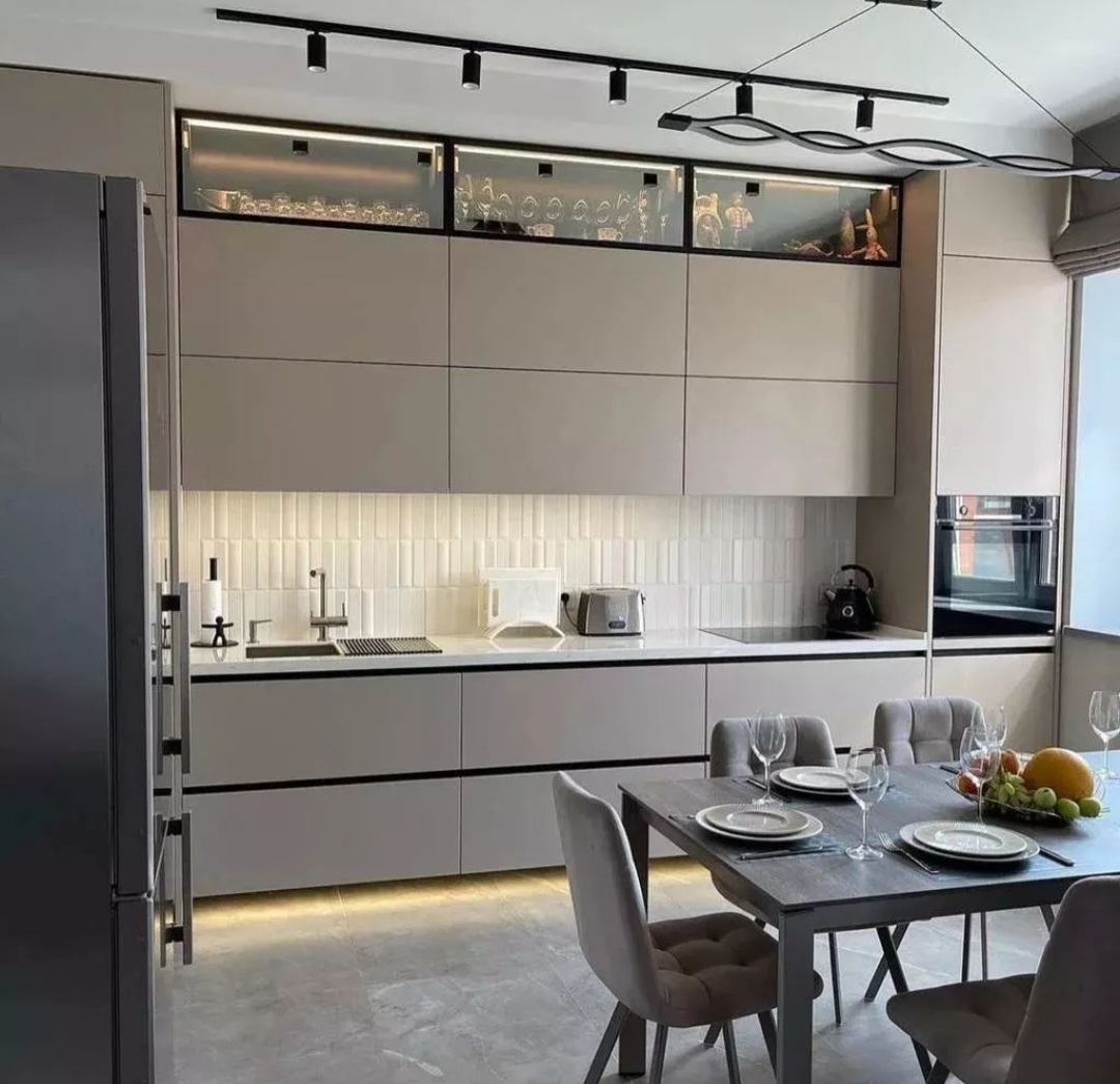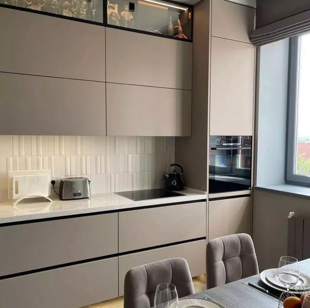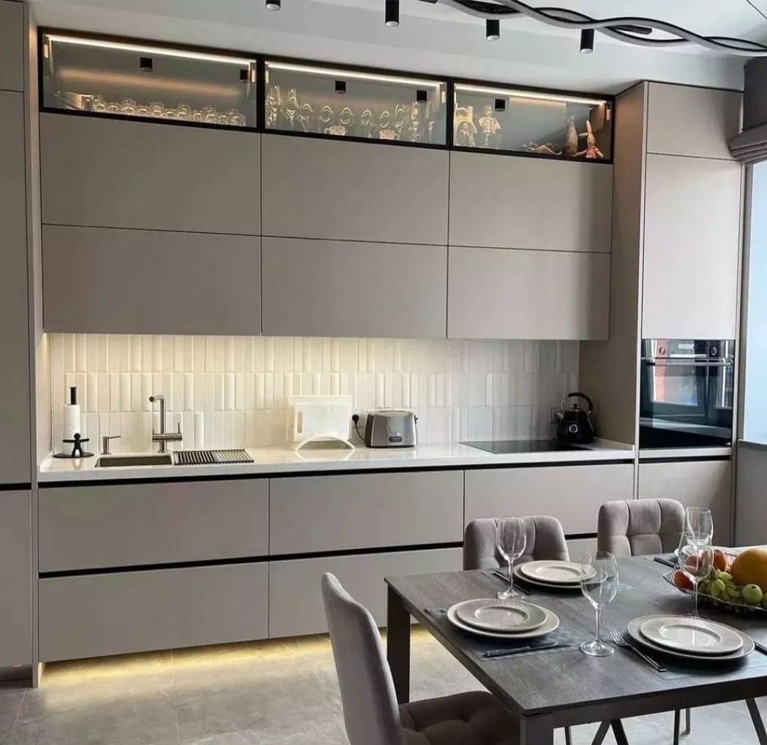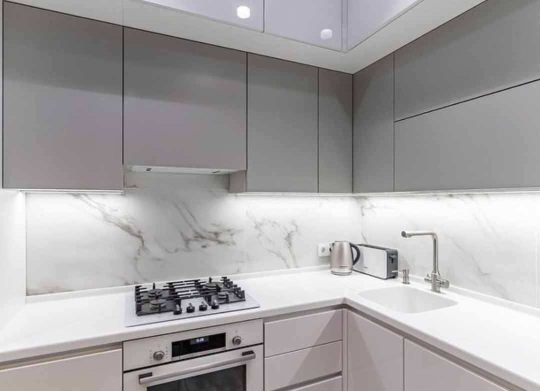 без ручек , с подсветкой, со встроенной техникой, со скинали