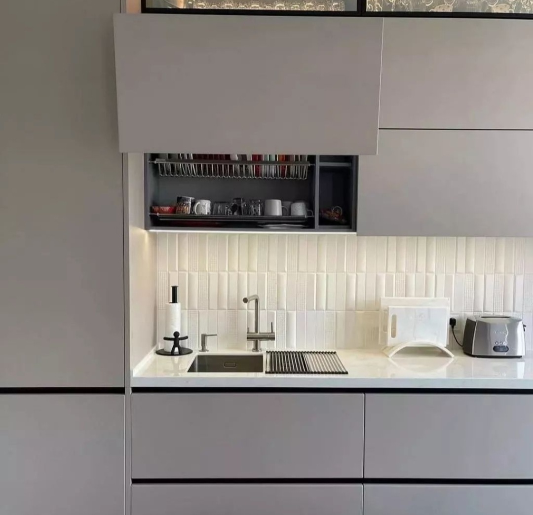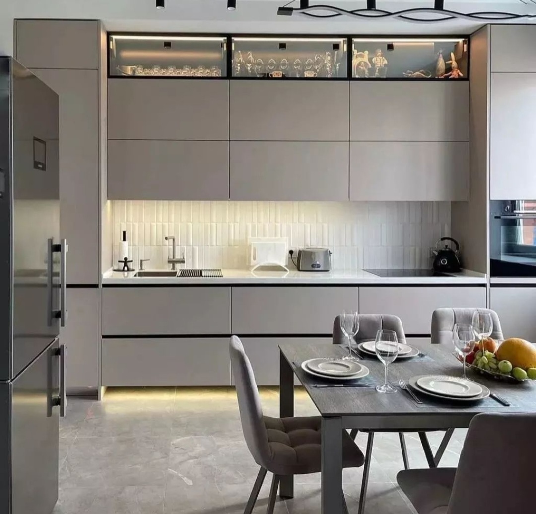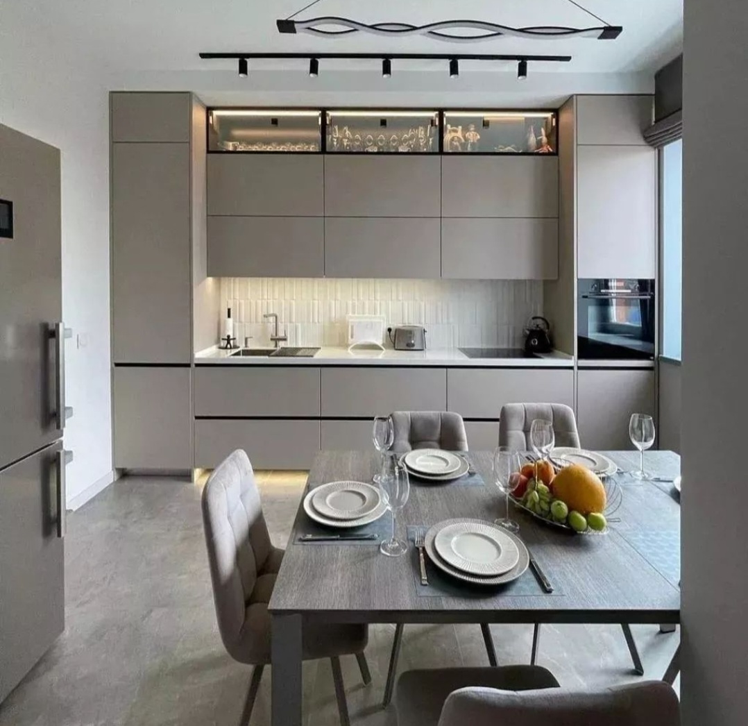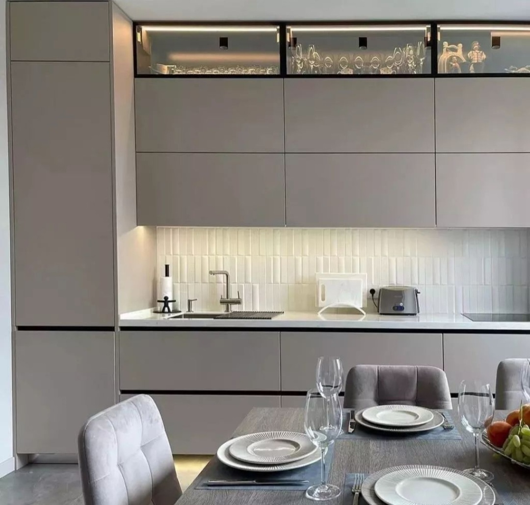 без ручек , с подсветкой, со встроенной техникой, со скинали