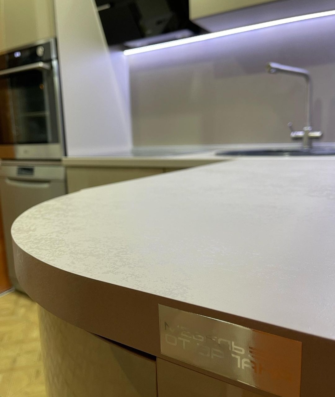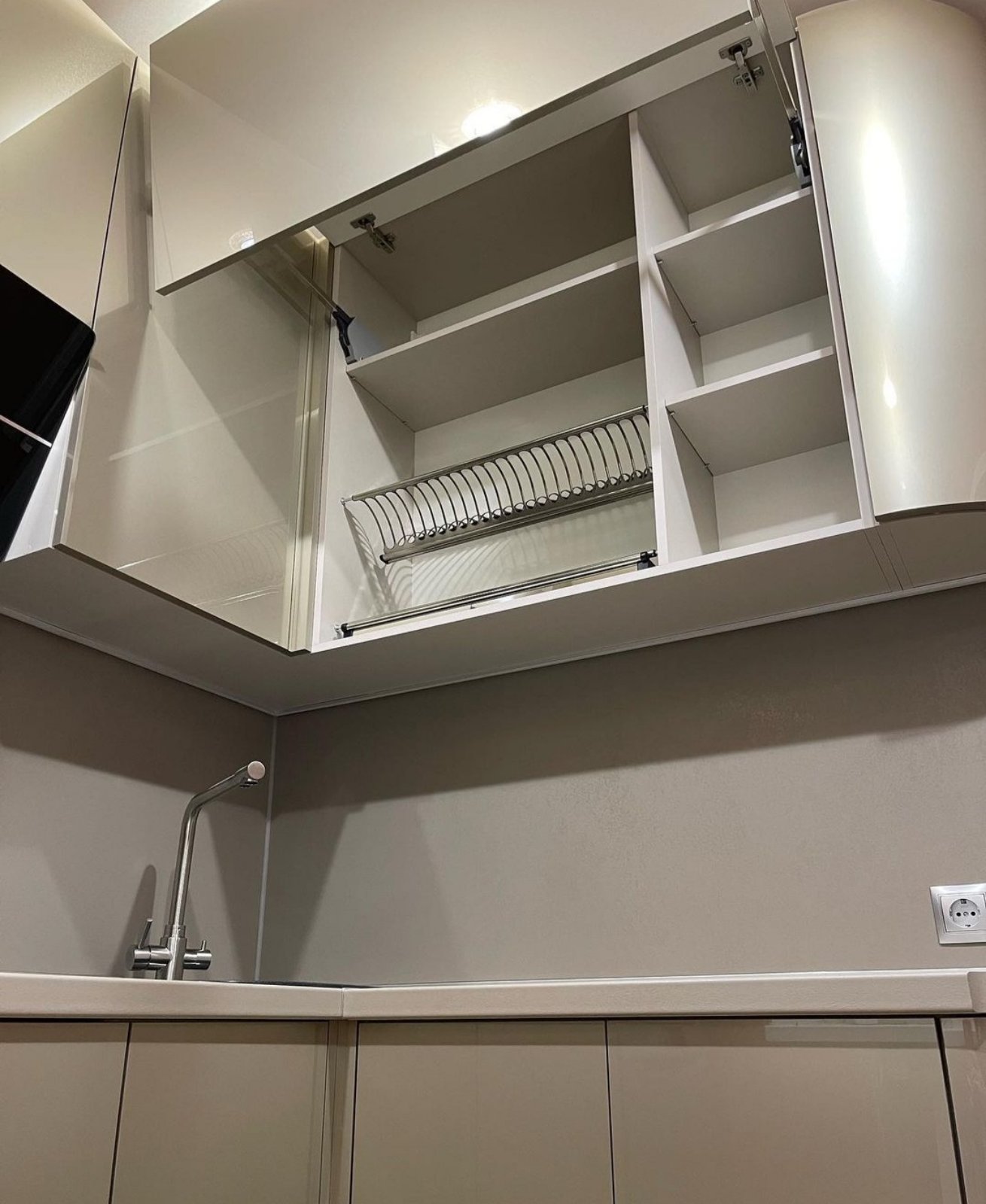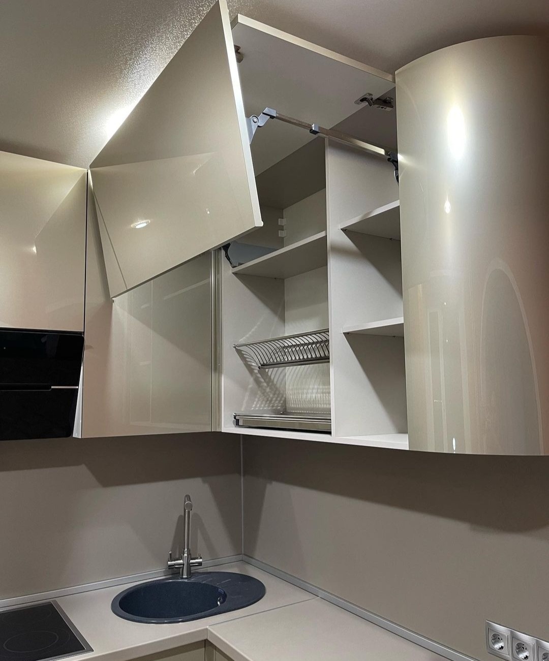 Глянцевый, Кухни без ручек, С радиусными фасадами