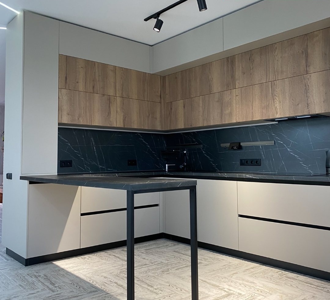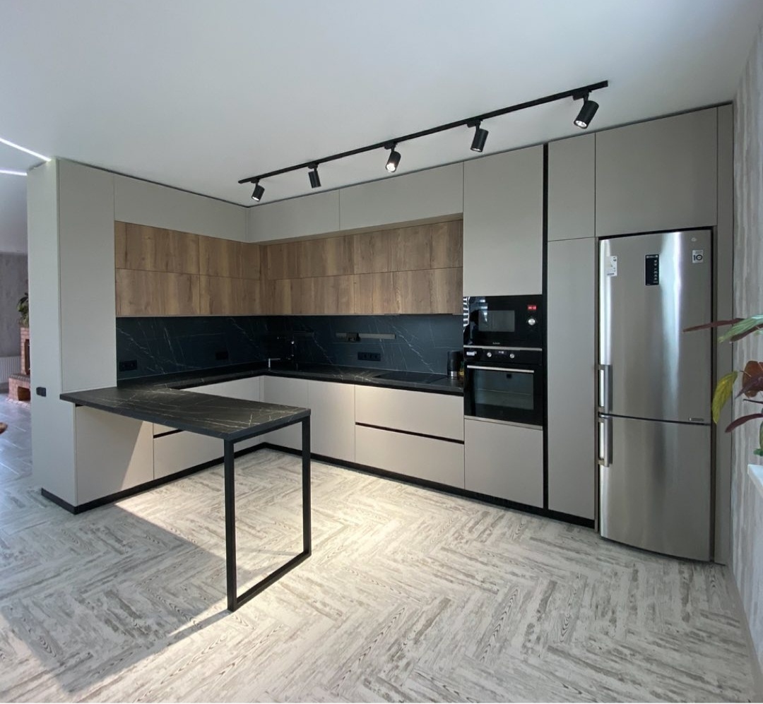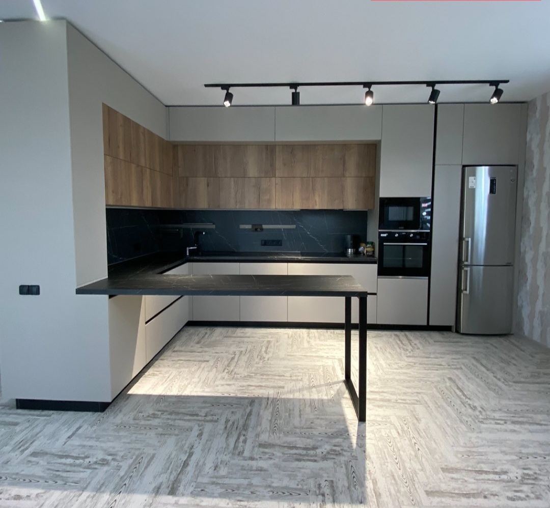 Угловая кухня с барной стойкой