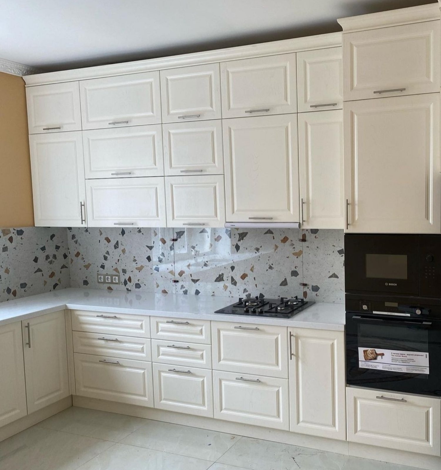 Кухня угловая белая под потолок