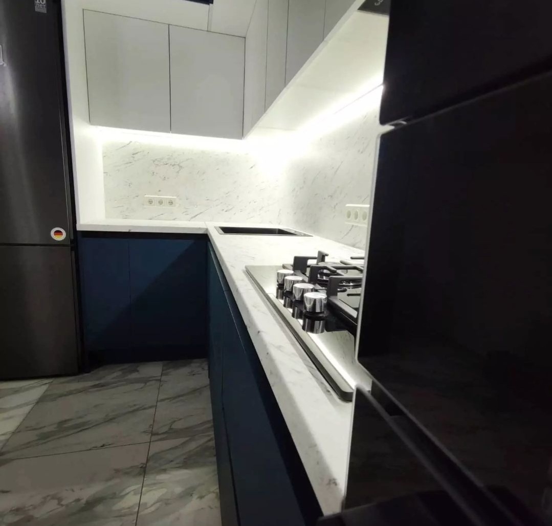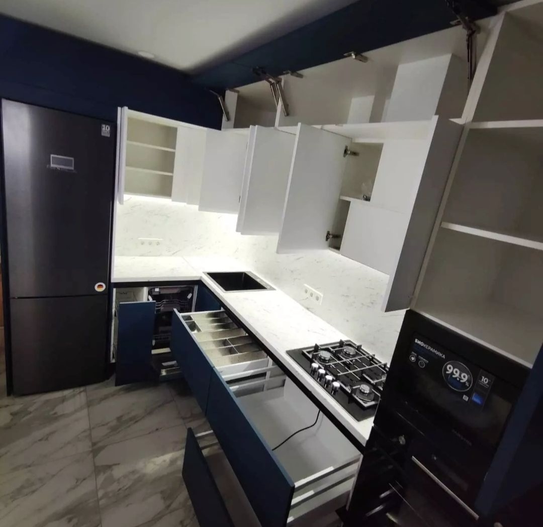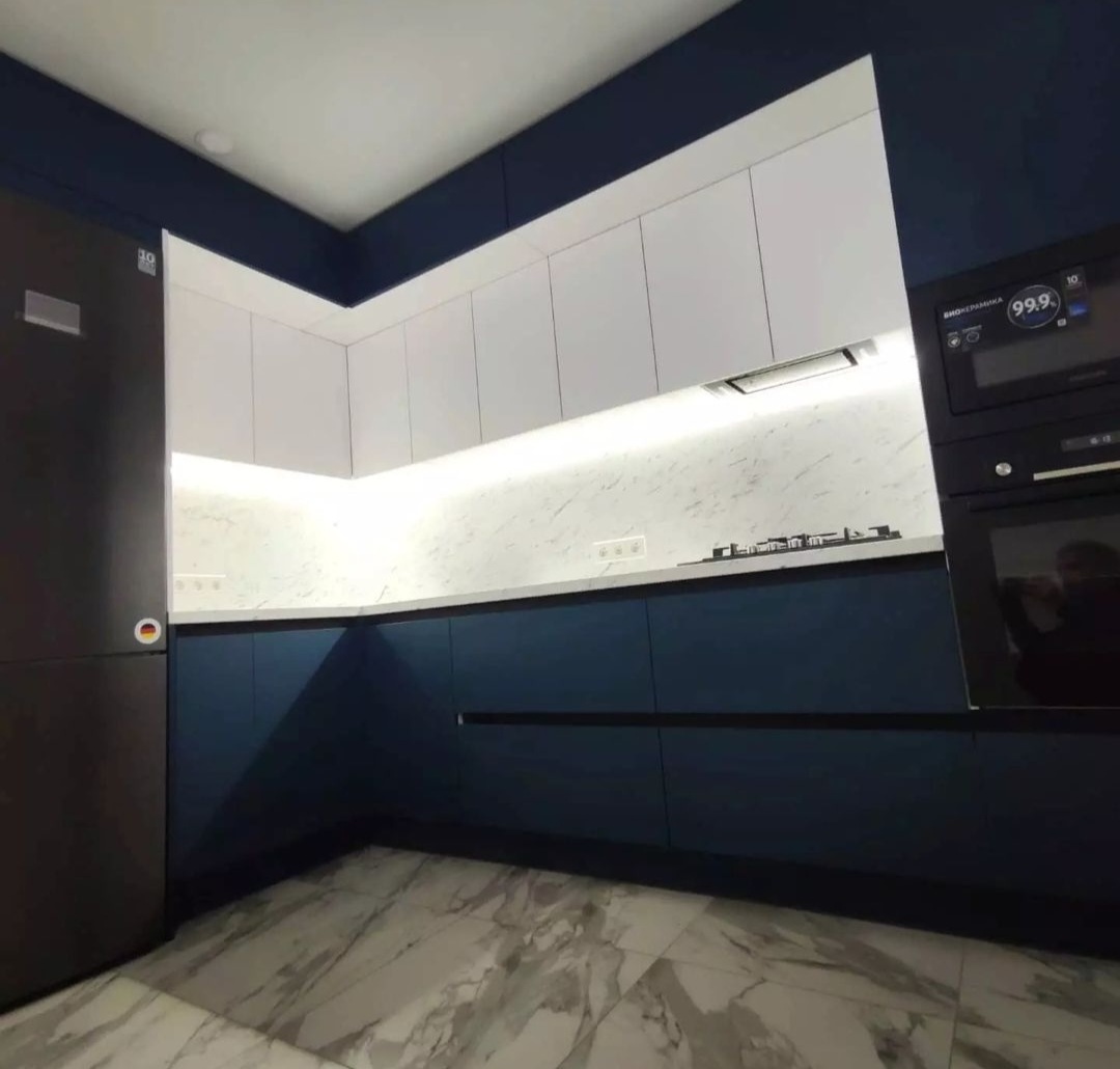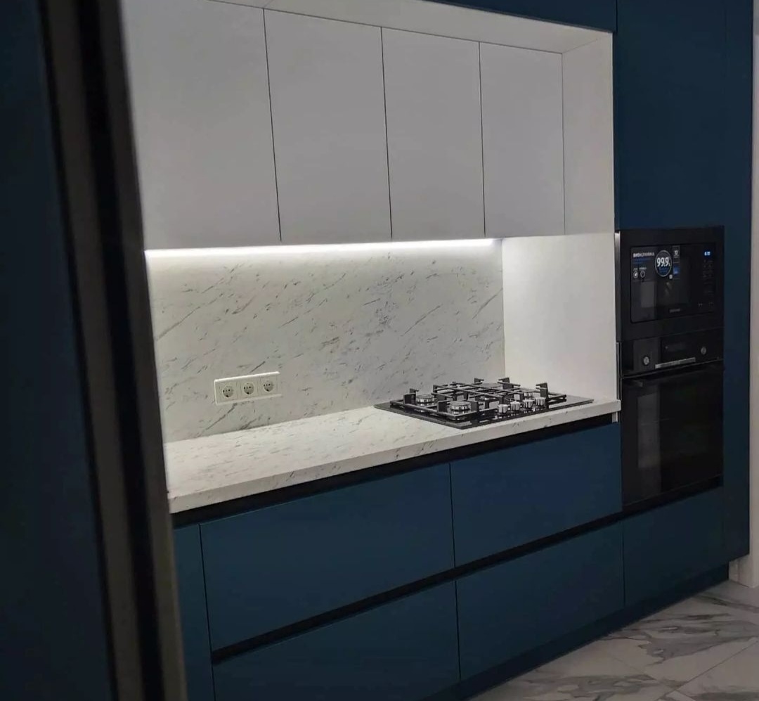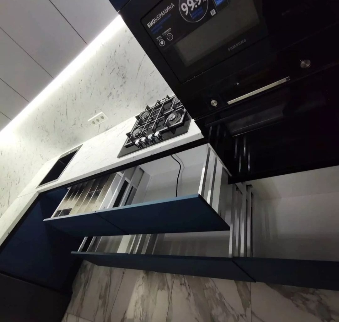 без ручек , с подсветкой, со встроенной техникой, со скинали
